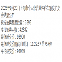 2025年9月份上海私人车牌额度拍卖成绩